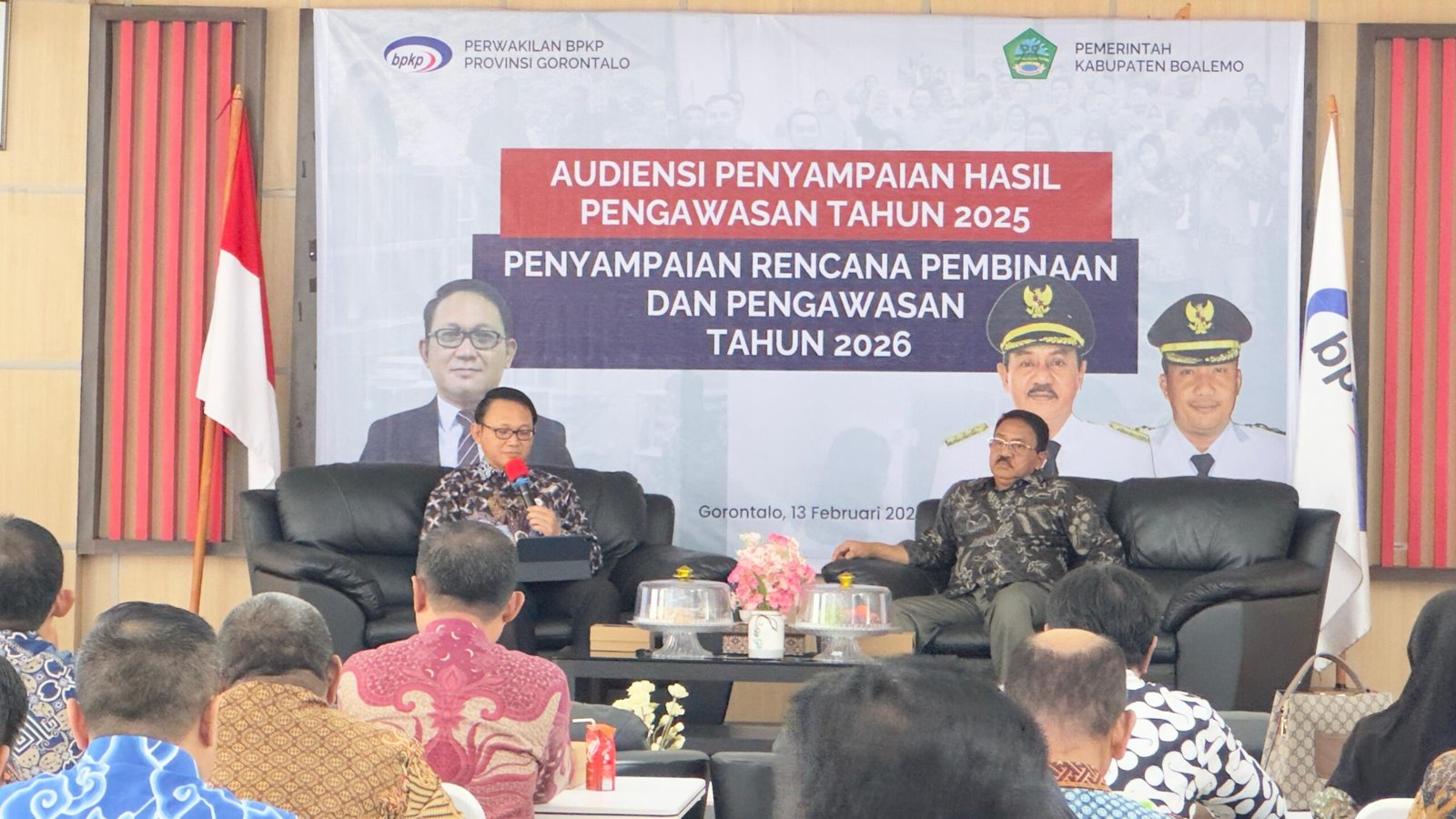 Disela-sela acara, Kepala Perwakilan BPKP memberikan surprise menyampaikan selamat ulang tahun kepada Bupati Boalemo yang kebetulan hari ini Jumat 13 Februari 2026 berulang tahun ke – 65 tahun.