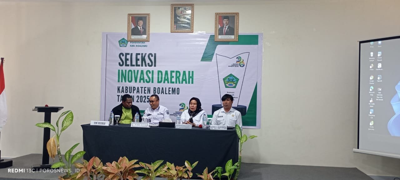 POROSNEWS.ID, Boalemo – Seleksi inovasi daerah hari ini, guna memberikan penguatan kepada OPD-OPD dilingkungan Pemerintah Kabupaten Boalemo dalam pelaksanaan dan pengembangan inovasi yang ada di OPD berupa informasi, arahan kebijakan, serta langkah-langkah kongkrit dalam pelaksanaan dan pengembangan Inovasi di OPD yang nantinya akan di tetapkan sebagai Inovasi Daerah.