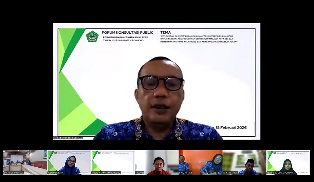 Itu disampaikan oleh Wakil Bupati Lahmudin Hambali pada forum konsultasi publik yang dilaksanakan secara darling oleh Bapppeda Boalemo, Rabu (18/2/2026).