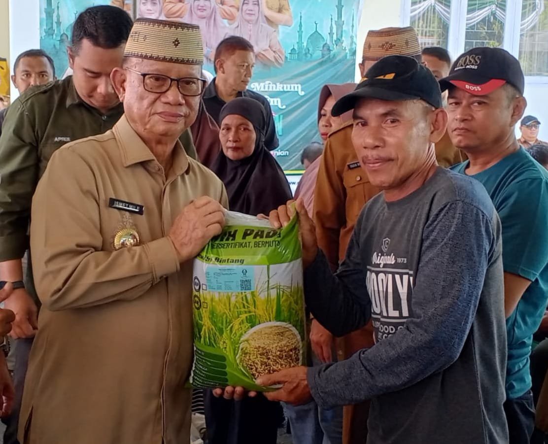 Bupati Ismet Mile Salurkan Bantuan Benih Padi dan Pangan Untuk Petani Bone Bolango