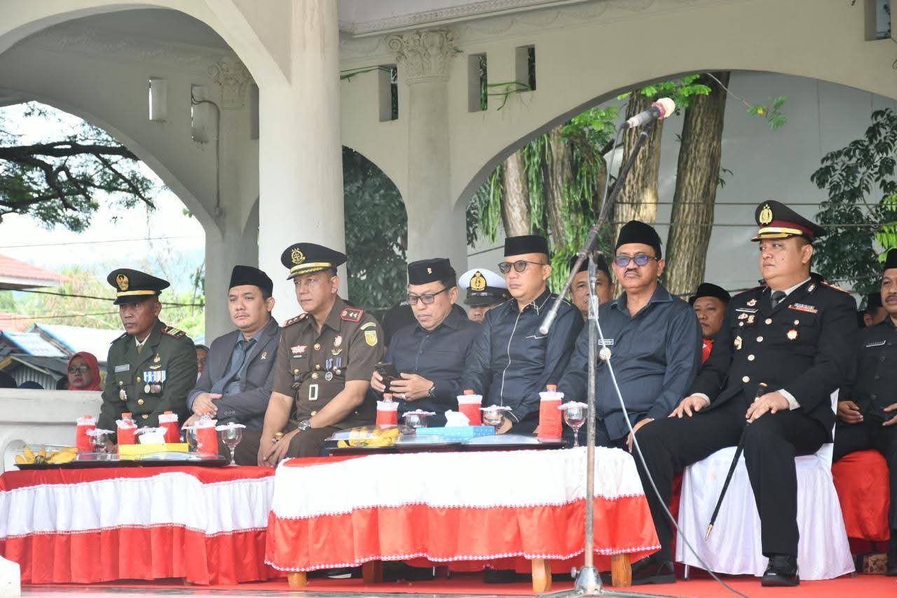 Selanjutnya yang Bbertindak sebagai inspektur upacara Kapolres Boalemo AKBP Sigit Rahayudi, SIK dan dihadiri Bupati Boalemo Drs. Rum Pagau, Wakil Bupati Boalemo Lahmudin Hambali, S. Sos, M. Si, Forkopimda, Ketua dan Wakil ketua Tp. PKK Kabupaten Boalemo dan Pimpinan OPD.