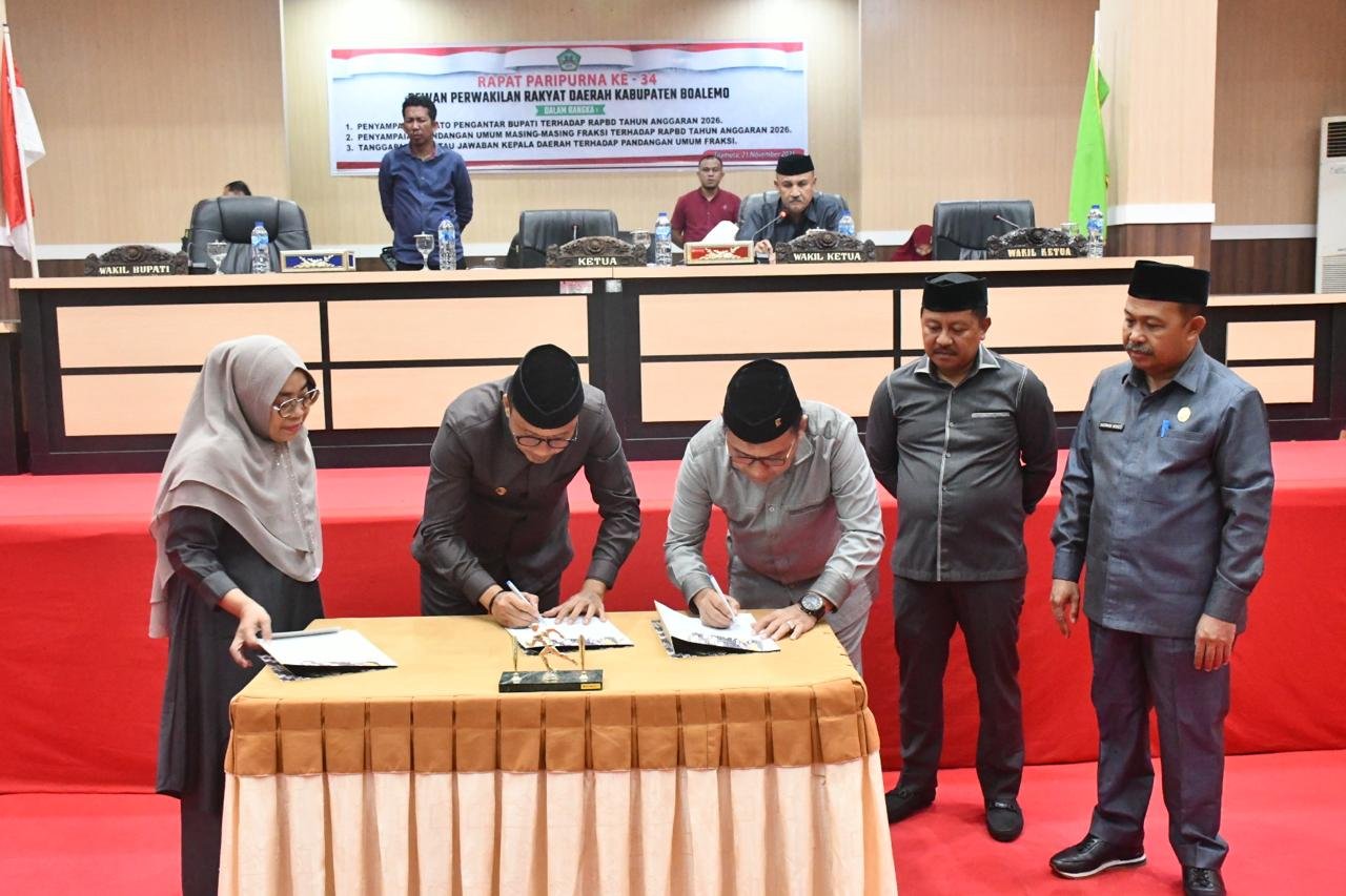 Itu disampaikan oleh Wakil Bupati Boalemo, Lahmudin Hambali pada sidang paripurna DPRD atas persetujuan dan penandatanganan kesepakatan bersama atas dokumen KUA dan PPAS tahun 2026 yang bertempat di kantor DPRD, Jumat (21/11/2025).